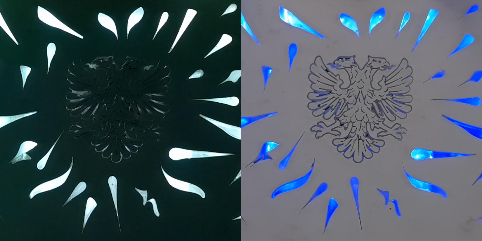 Combining the eagle with artist Medeio caligraphity art and sustainable light-transmitting gypsum for Expo 2020 Dubai. A moving table used as an art piece interior design element.