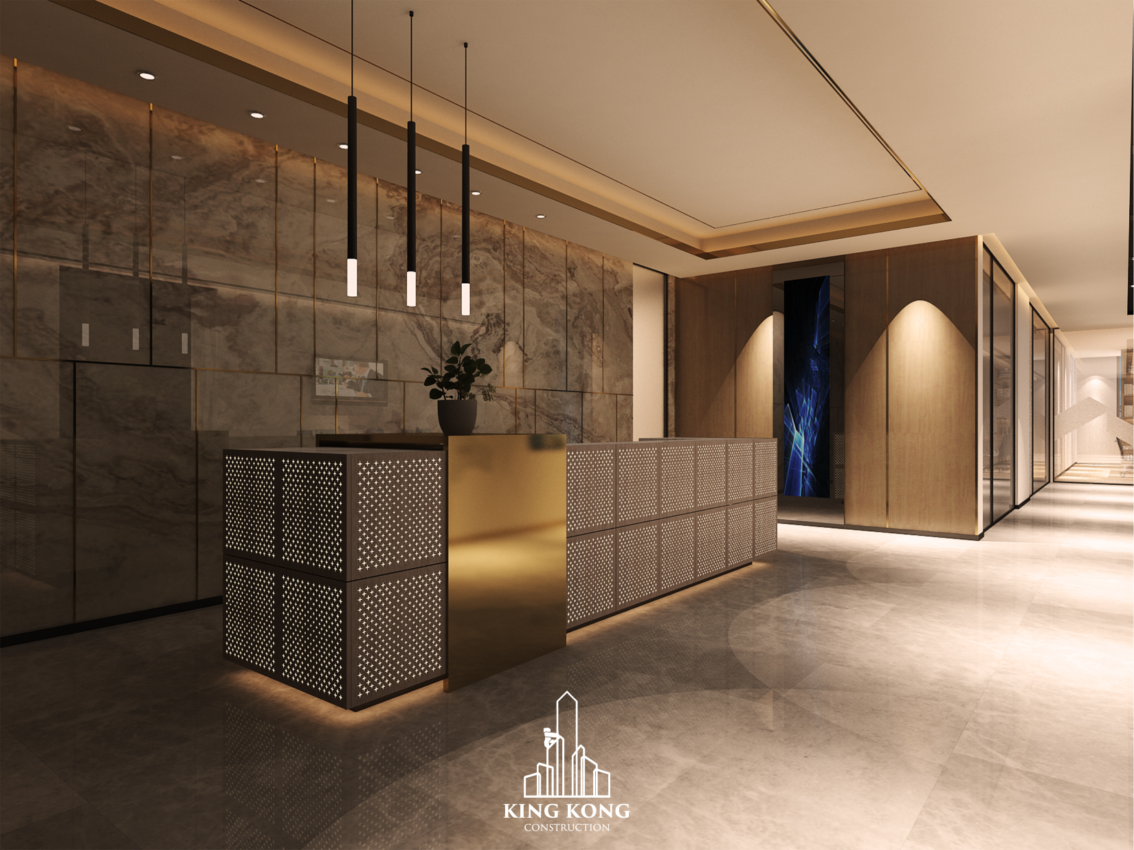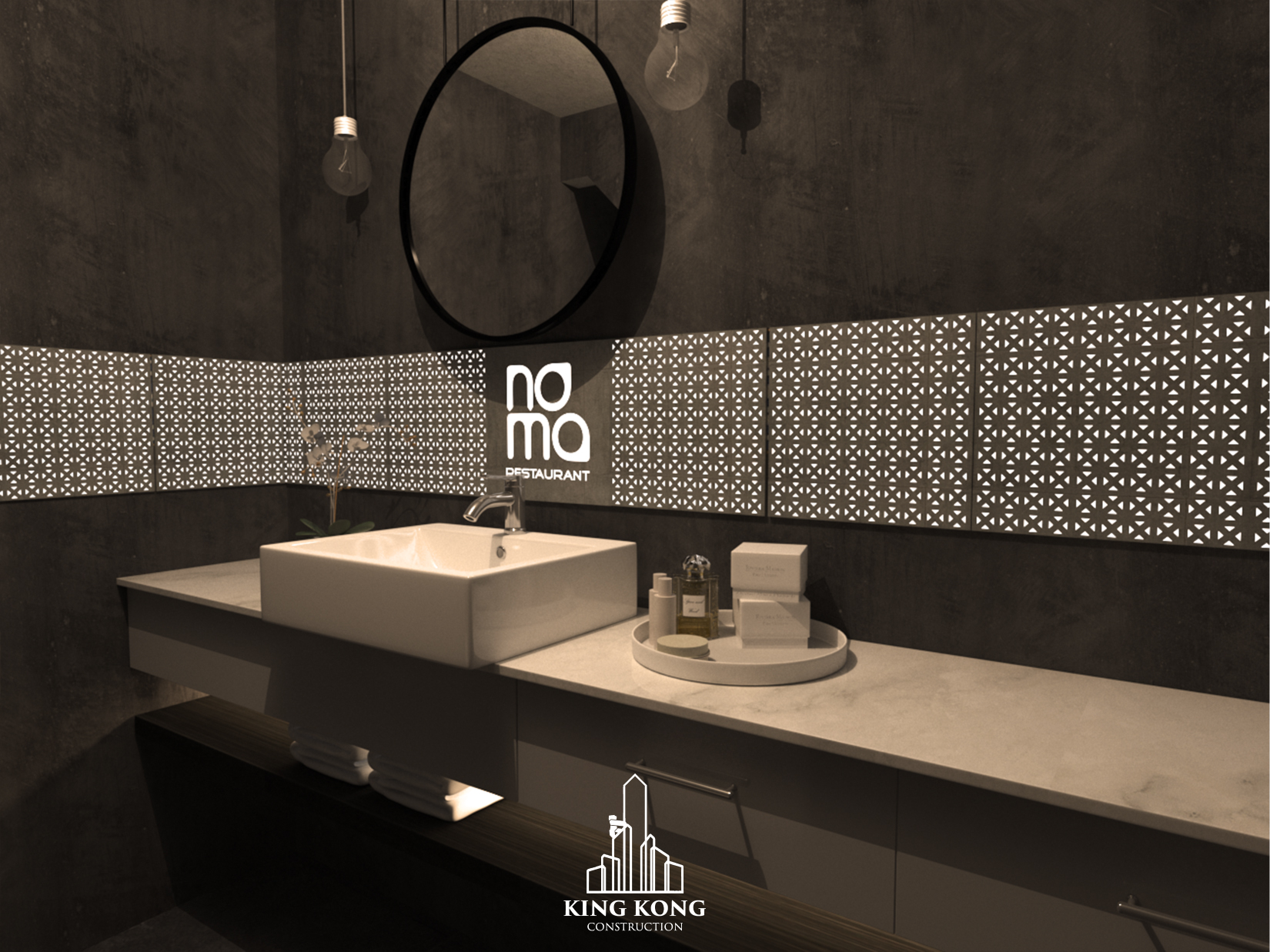 KING KONG’s light transmitting concrete, CONCORUS, is based on the fusion of three main components - concrete, 3D printed sustainable plastic and light. When artificial or natural light hits the sustainable plastic, light is transmitted through the concrete’s surface, making it glow to life.