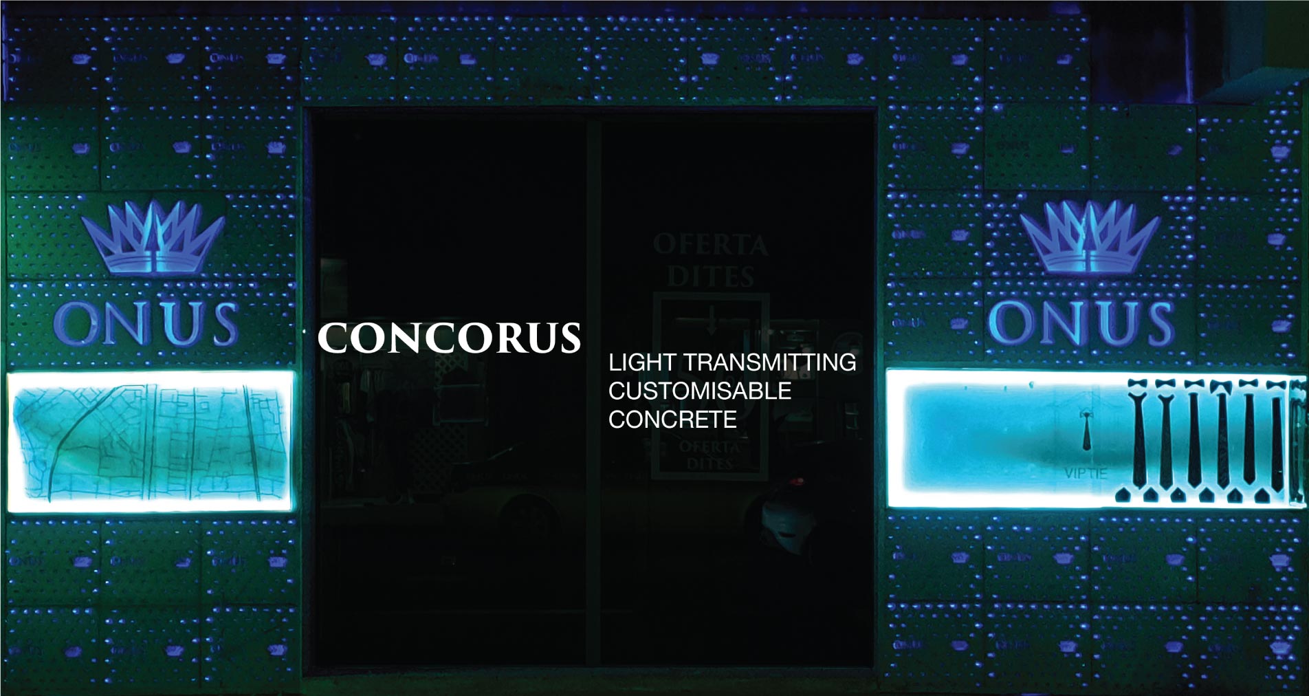 The CONCORUS light transmitting concrete and gypsum can be universally applied in interior and exterior projects such as: facades, stairs, floors, interior design furniture and public spaces.